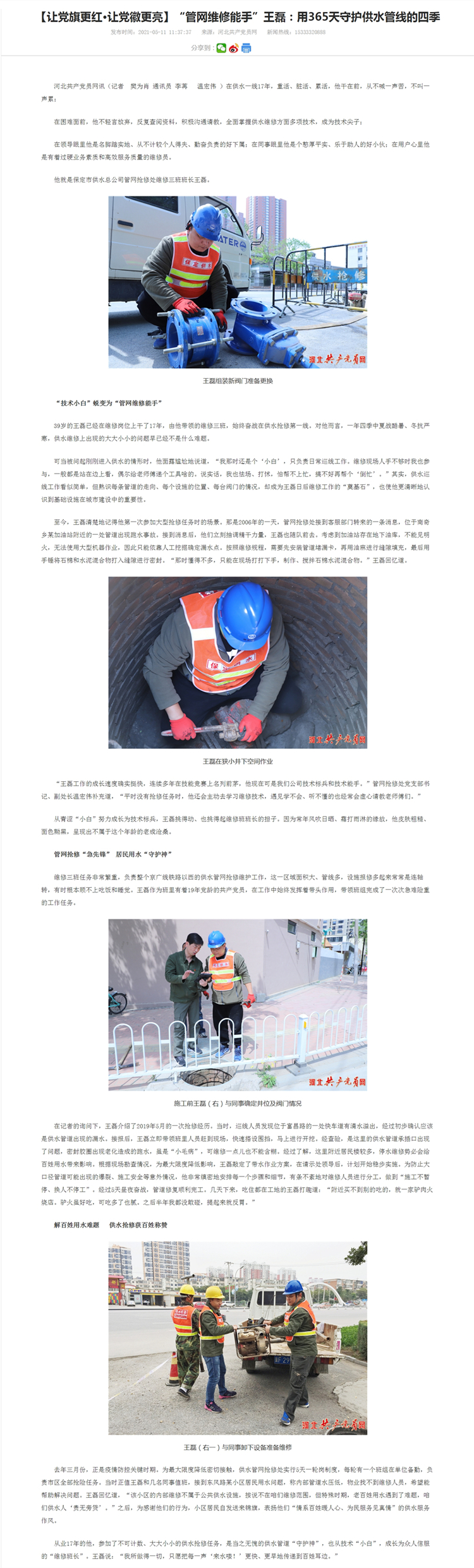 2021年度:管網(wǎng)維修員王磊