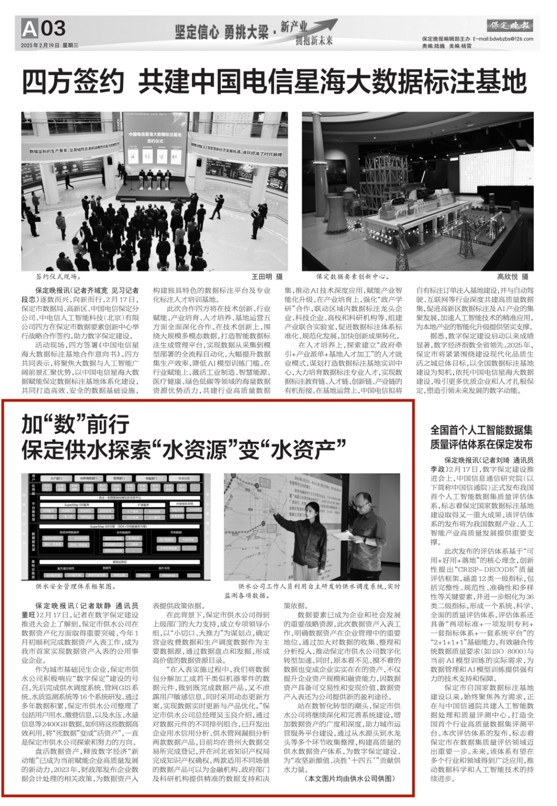 《保定晚報(bào)》:加“數(shù)”前行 保定供水探索“水資源”變“水資產(chǎn)”
