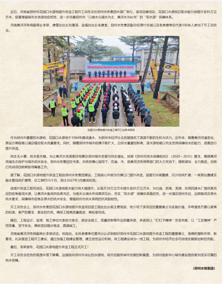 日取水能力將達85萬立方米 鄭州花園口水源地提升改造工程開工