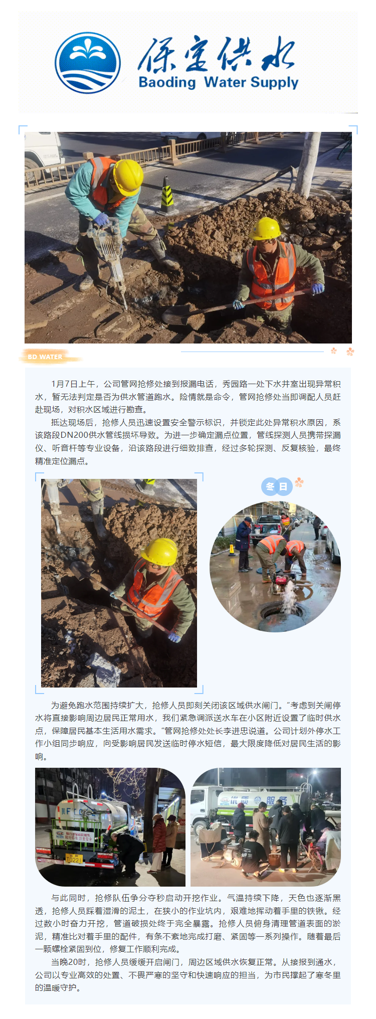 寒冬里的溫暖守護(hù) 保定供水緊急修復(fù)損壞管道