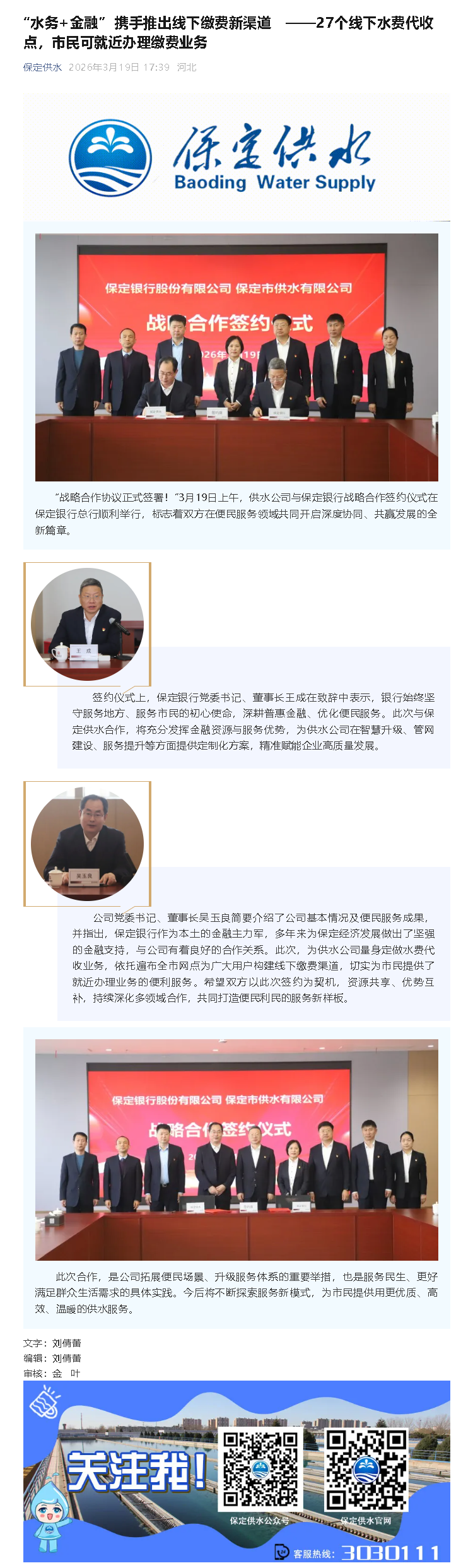 “水務(wù)+金融” 攜手推出線下繳費(fèi)新渠道